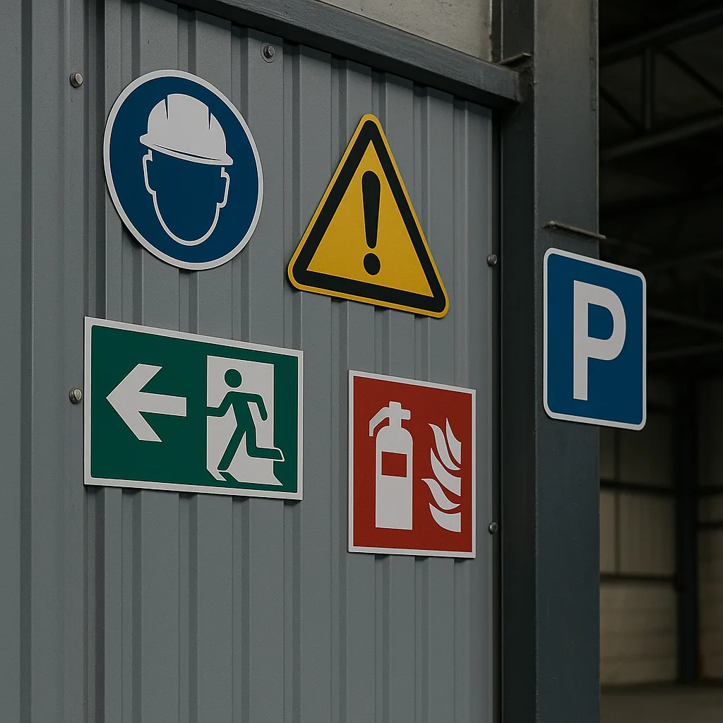 Skyltar som skapar trygghet och struktur – från varnings- och påbudsskyltar till exit-, brand- och parkeringsskyltar.